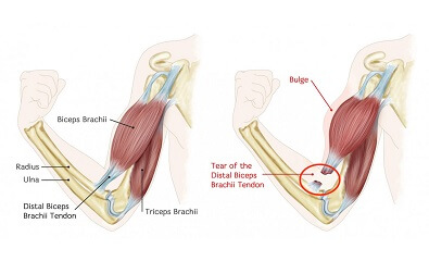二头肌肌腱将二头肌肌肉连接到肩部和肘部的骨骼中。如果你在肘部撕裂肱 二头肌肌腱,你的手臂就会失去力量,并且无法用力将手臂从掌心向下转到 掌心。